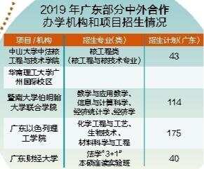 家门口就能读境外名校,毕业后还可能同时获中外名校学位,接轨国际化办学、教学模式,海外名师、院士团队来授课…… 近年来,广东各大高校开设的“中外合作办学项目”、“中外合作办学机构”、“国际班”等越来越受广大考生青睐,报考热度持续不减。 专家分析,此类国际班或项目虽然收费较高,对学生英语普遍要求较高,但在修读国内本科学历的同时还能拿到境外学历,出境访学、交流机会多多,本硕连读渠道畅通,因此,成为考生和家长心目中性价比颇高的“绩优股”。 A 年度黑马:华南理工大学广州国际校区 招生亮点:在地国际化、国际大咖授课,广东生源将超60% 今年高招,华南理工大学广州国际校区首次亮相。 2017年3月15日,教育部、广东省、广州市和华南理工大学共建广州国际校区协议在北京签署,是我国部、省、市、校四方共建大学校区之首创。 华工广州国际校区2019年开始本科招生,共招收400人,其中高考招生200人,二次选拔200人。广东生源将超过60%。 广州国际校区实行在地国际化、聚焦新工科、本硕贯通制办学,虽然采用国际化教学,但招生代码和学生学费与其他校区一致。校区着力培养工科领军人才,要求学生有比较好的综合素质,比较好的英语基础。 国际校区开设招生专业有:吴贤铭智能工程学院设机器人工程和智能制造工程两个专业,微电子学院设微电子科学与工程专业,生物医学科学与工程学院设生物医学工程专业,分子科学与工程学院设分子科学与工程专业。 目前,校区已与美国密歇根大学、南加利福尼亚大学,加拿大多伦多大学、麦克马斯特大学,英国杜伦大学,德国卡尔斯鲁厄理工学院,澳大利亚西澳大学,荷兰代尔夫特理工大学,新加坡南洋理工大学,香港科技大学等世界一流大学确定了密切合作伙伴关系。入读国际校区,可能成为国际大咖的弟子。 今年,华工发布“新工科F计划”,广州国际校区整体将作为“新工科人才培养试验区”率先实施。该计划归纳为公式:F(p)=Pt×Pl×Pa。其中,F-Future,代表未来,努力把每个学生培养成能够引领未来的人;Pt-Power of thinking,代表思想力,培养学生的独立思考能力和批判性思维;Pl-Power of learning,代表学习力,培养学生的自主学习能力;Pa-Power of action,代表行动力,培养学生解决复杂问题、探索已有世界或创造未有世界的行动能力。 B 性价比高: 暨南大学伯明翰大学联合学院 招生亮点:同时获暨大和伯明翰大学两校学位,在粤招生增加 2017年开始招生的暨南大学伯明翰大学联合学院,被认为是暨大性价比最高的国际合作项目。 该学院于2016年9月正式获教育部批准成立,是暨南大学“双一流”建设的重要组成部分。学院坐落于广州市暨南大学番禺校区,目前设有数学与应用数学、信息与计算科学、经济统计学及经济学四个本科专业,于2017年开始面向全国招生。 学院各专业的培养方案由暨南大学和伯明翰大学共同制定,引进国际先进的教学理念、课程体系及教学管理体系,依托两校的优质教育资源,致力于培养具备扎实数学基础、出色创新能力与合作精神、多语言优势及国际视野的高级复合型人才。 在此基础上,学院针对不同专业有所侧重,突出理学和经济学融合,使学生在应用数学、计算方法和程序设计、统计与精算、经济与金融等方面各有所长。 符合双方学位授予要求的学生将同时获得暨南大学和伯明翰大学两校学位。 学生入学后同时完成暨南大学和伯明翰大学双注册,同等享有两所大学的在校生资格。满足两校学位授予条件的毕业生将获得暨南大学理学或经济学学士学位证书以及伯明翰大学理学学士学位证书,同时,满足暨南大学毕业条件的毕业生将获得暨南大学毕业证书。 两校颁发的学位、学历证书与其在所在国颁发的学位、学历证书完全一致,并在该国获得承认。 据了解,前两年,暨大推出暨大伯大联合学院的四个专业招生,反响热烈,所招收学生质量高,拟进一步扩大招生,招生指标从2017年的120人、2018年的210人增加到今年的230人,面向招生的省份包括广东、湖南、江西、四川、重庆、河北、安徽、河南、山东、内蒙古,今年在粤招生114人,新增指标基本投放在广东。 需要注意的是,暨大伯大联合学院在粤实行单独代码招生,目前只招收理科生,且对考生英语、数学单科分数要求较高。 C 进步最快:广东以色列理工学院 招生亮点:60%教师来自以色列理工,今年在粤招175人 广东以色列理工学院是我国第一所引进以色列优质高等教育资源的具有独立法人资格的中外合作大学。学院由世界名校以色列理工学院与汕头大学合作办学,坐落于广东汕头市。 2016年12月5日,教育部批准正式设立该校,2017年第一年招生。著名经济学家李剑阁、2004年诺贝尔化学奖得主阿龙·切哈诺沃分别为第一任校长、常务副校长。广东省人民政府、汕头市人民政府和李嘉诚基金会共同支持学校的设立。 广东以色列理工学院教师队伍全球招聘,60%以上教师由以色列理工学院派出。 2018年,广东以色列理工学院被列入广东省“高水平大学建设计划”,成为入选该项计划的最年轻的高校。 毕业生将获得广东以色列理工学院的毕业证书、学位证书,以及以色列理工学院的学位证书。 羊城晚报记者从该校了解到,2019年该校将在广东等17省(市)招收280名本科生,其中广东招175人。招生专业与2018年相同,即化学工程与工艺、生物技术、