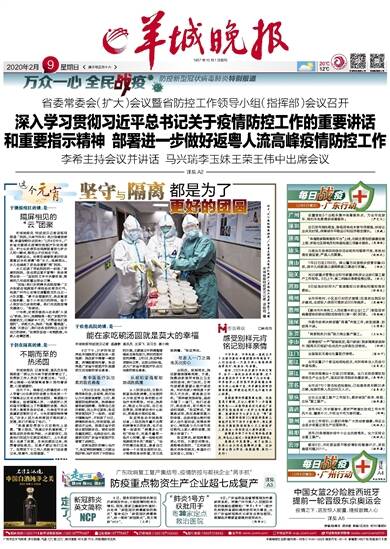 1957年10月1日创刊 20℃ 12℃ 2020年2月9 星期日 庚子年正月十六 防控新型冠状病毒肺炎特别报道 责编/陆德洁 梁克毅 美编/伍岩龙 校对/潘丽玲