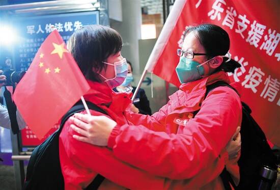 3月21日,564名队员返粤时,广东医疗队已基本完成在荆州的支援任务。广州市第一人民医院呼吸与危重症医学科副主任医师刘俊告诉记者,当时,由于还有十多名重症患者住院,医疗队中12名从事ICU、呼吸内科专业的医护人员写下请战书,决心继续坚守。 经过近一周“收官”奋战,送出最后一名住院病人后,15名队员完成使命,昨日踏上归途。“欢迎队员们平安回家,你们从2月10日出发荆州,经过40多天的奋战,今天最后压阵返粤,意义重大。”当天,广东省卫健委副主任周紫霄在广州南站迎接归来的战疫英雄。(张华 粤卫信)