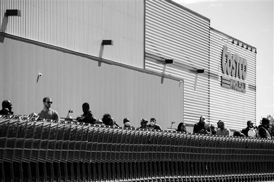 3日,华盛顿市民在超市外排队,仍有不少人不戴口罩 新华社发 |