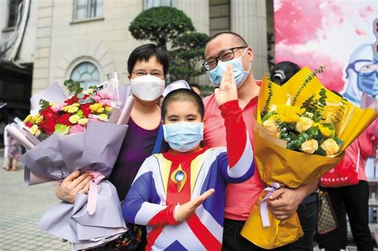 “儿子,爸爸打赢怪兽回来了!”在迎接的人群中,一眼看到穿着奥特曼衣服的儿子,中山大学孙逸仙纪念医院第二批支援湖北疫情防控医疗队队员王川立刻给9岁儿子力力一个大大的拥抱! 因为在出征仪式上拿出儿子送的奥特曼卡表达战“疫”决心,王川被网友称为“奥特曼爸爸”,成为“网红”。那张奥特曼卡不小心被王川“留在”了武汉,这次力力穿了一件奥特曼衣服,拿着和王川带去武汉一模一样的奥特曼卡,和妈妈一起来迎接爸爸回家。“回家第一件事,我想给他们母子俩做一顿饭吃!”王川不改幽默面对生活的本性说。 今天,中山大学孙逸仙纪念医院第二批支援湖北疫情防控医疗队131名队员,结束14天休整,返院回家。医院举办了简短而温馨的欢迎仪式。 阳光灿烂的周日早上,看到阔别已久的亲人、同事,队员们激动相拥,脸上都是灿烂笑容。 该院党委副书记、副院长,医疗队领队许可慰表示,这次支援武汉行动是医院建院185年来最大规模、最长周期的一次外出医疗救援行动。两个月来,医疗队员们守望相助,在秉承着“博爱、崇德、求精、奋进”的院训精神和逸仙情怀,圆满完成了这项支援武汉抗疫的国家任务,这段患难与共的医疗队生涯也将成为大家一辈子最难忘的记忆。 “今天,我第一次见到刚出生的女儿!”来自重症医学科的赖永新护师是一位有10年党龄的老党员。报名支援武汉时,同是重症医学科护师的妻子美玲,已怀孕8个月。3月26日,赖永新在武汉盼来了好消息,美玲平安生下女儿。欢迎仪式后,赖永新迫不及待地赶往月子中心,拥抱两个月未见的妻子,以及刚出生的小生命。