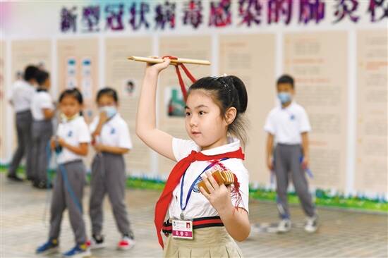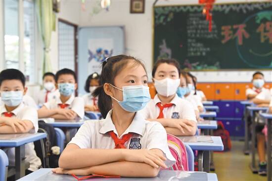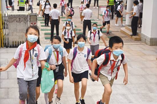 统筹/羊城晚报记者 蒋隽 文/羊城晚报记者 蒋隽 林清清 陈玉霞 孙唯 崔文灿 王敏 图/羊城晚报记者 林桂炎 萌娃归来!广州小学一二三年级的小豆丁们今早返校了。 今天,广州市第四批学生返校,涉及小学、中职和技工学校共1300余所学校,预计新增返校小学生约60万人。至此,全市前四批共1730余所学校复学,返校学生总数160余万(不含在穗大专院校)。 胖了怕同学认不出他 华南师范大学附属小学一年级5班的孙天宏小名“花生米”,他妈妈笑说,宅家几个月,孩子胖了七八斤,成了“爆米花”。返校第一天,孩子“最担心我长了一圈的肉,同学们都认不出我了”。 花生米说,“同学们的样子我是记得的,但我怕忘了他们的名字。”返校最高兴的是,“可以跟同学们一起玩。” 海珠实验小学一位二年级小男生最期盼的事,除了跟同学一起上课,还有考试!“很久没做试卷了。” “家校护学队”保驾护航 海珠实验小学富基校区7个班级的280名孩子重返校园,学校组织了“家校护学队”为学生上学、放学保驾护航。 “家校护学队”是由学校老师和家长组成的联合护学队。该校正门前是一条不算宽敞的双行车道,对面东南方是附近小区的地下停车场出入口,车来车往;对面西南方是幼儿园入园门口。因此,“家校护学队”肩负重任,指挥家长车辆尽快放下孩子入校,不造成聚集和停留。 全体男教师都要参加“家校护学队”。护学队每天分两班,一班负责上午上学,一班负责下午放学。此外,片区民警也同时会为学生保驾护航。 玩游戏学“安全接触” 华师附小校长张锦庭表示,对于低年级学生返校复课,特别设计了一系列心理健康课程,将积极心理学、舞动治疗、绘画治疗、音乐治疗的元素融合到游戏中。充满仪式感的“复学礼”,让同学们通过“整衣冠,洗小手,敬先锋”,以积极饱满的精神状态进入复课状态。 对于许多家长担心的如何让低年级学生保持自觉防疫问题,华师附小学校心理老师设计了“背部触电”“舞动数字”等游戏,让同学们在游戏中建立安全接触观念,锻炼与人沟通技能,让同学们尽快积极融入集体生活。 家长孩子合演《战疫日记》 越秀区朝天小学朝天校区共近500名学生平安返校。小萌娃们除了背着书包,每人还佩戴了一个香囊。 一年级的羽希同学开心地介绍小香囊,“是我自己抓的药方,有白术、肉桂等,香囊外面的小纽扣是我自己缝的,香囊背部是老师教的等分线,我都缝上去了……”孩子们宅家期间自己制作了防疫香囊。 朝天小学还准备了复课典礼的特备节目:由核酸检测人员家庭李钏琪家庭、一线警务人员家庭子皓家庭和志愿者团体家庭梓涵家庭共同以舞台剧的形式演绎了《战疫日记》,他们用一线的抗疫经历,给孩子们讲述相关的抗疫故事,让孩子们懂得一线抗疫工作者的艰辛,懂得珍惜现在的幸福生活。子皓妈妈说,这是她第一次面对孩子们表演,“是非常有意义的表演,这些都是自己工作过程中的最真实个案和感受,就直接表达出来了”。 朝天小学以观看“德叔”(此次驰援湖北抗疫的第二批国家中医医疗队队长张忠德)抗疫视频作为复学思政第一课,该视频是德叔专门为朝天小学录制的,分享他们的抗疫感受。