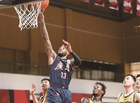 广东队球员威姆斯(左二)轻松上篮 新华社发 |