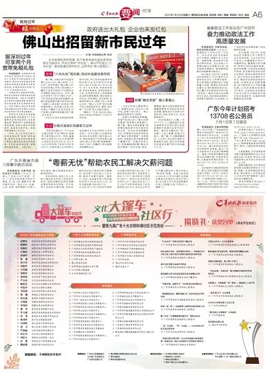 文/图 羊城晚报记者 张闻 出于疫情防控的需要,珠三角多地政府倡议新市民留在当地过年,并送出各种“大礼包”。佛山不但送出“八大礼包”,基层更通过各种形式,让新市民“留人更留心”。