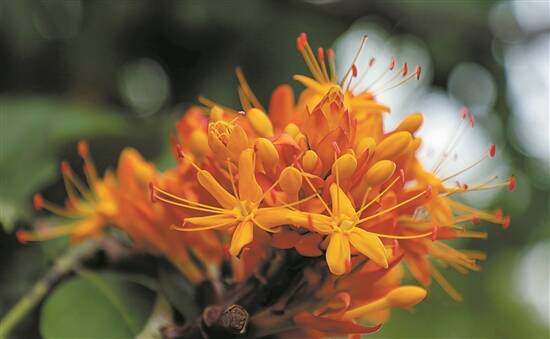羊城晚报讯 记者汪曼、通讯员李建基摄影报道:近日,广州各地的无忧树吐艳了,金黄色的花朵越开越盛,十分引人注目。从现在到3月下旬,都是观赏无忧花的好时光。 无忧树是佛教的圣树、神树,故乡在亚洲的斯里兰卡、马来西亚、印度等热带或亚热带地区,我国海南、云南、广西、广东和台湾等地都有种植。广州地区的无忧树,常年在2月下旬进入始花期,3月下旬前后进入盛花期,4月下旬转入末花期。无忧树的花期较长,可长达一个多月。今年的3月中、下旬,都是观赏无忧花的理想时间。 20世纪末,无忧树在广州还是“凤毛麟角”,近年来越来越多。像天河区龙眼洞迎龙路就栽种有100多株无忧树,市民也可在华南植物园、文化公园、莲花山、天河公园、黄花岗公园、晓港公园、中山大学、海幢寺和光孝寺等地一睹无忧树的灿烂芳容。