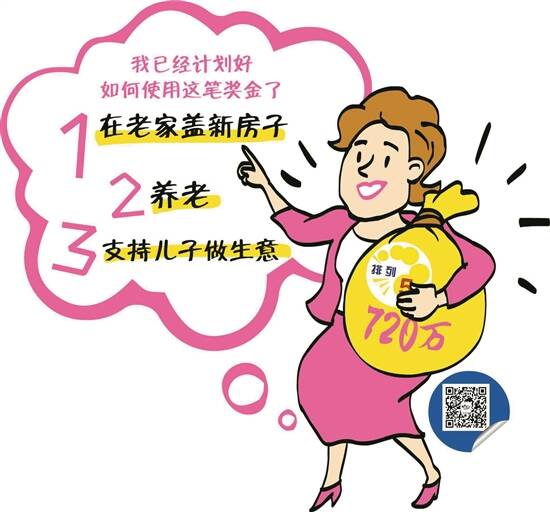 文/羊城晚报记者 吴珊 通讯员 粤体彩 插图/采采 2月27日,体彩第21048期排列5开出中奖号码为“9、4、5、6、7“,一等奖全国开出204注,每注奖金10万元。在当期的204注一等奖中,有72注花落广东佛山。这72注一等奖是一位50多岁的大妈一人独得,以一张72倍直选票“妙”擒720万元大奖,为国家税收贡献了144万元。 3月1日,这位大奖得主李大妈(化名)在儿子和儿媳妇的陪同下前来兑奖。李大妈纯朴善谈,在兑奖时就掩饰不住兴奋并分享了她的中奖经历。据李大妈介绍,她和普通大妈一样,照顾家庭带带小孩,也会跳跳广场舞。同时,她还有个爱好,就是买彩票,尤其喜欢购买体育彩票。 李大妈说,她在跳广场舞时接触的都是爱运动的人群,也切身感受到体彩公益金为群众体育做出的贡献,对体彩的公益性也有所了解,所以多年来都钟情于购买体育彩票。李大妈平时投注都是十几元到二十元之间,属于理性购彩者。这次她中得大奖的却是72倍投注,这是怎么回事呢?李大妈回复说:“我就是觉得会中啊,所以就买多点,很奇妙。” 追问之下,李大妈仍然笑而不答。这时在旁边的儿媳妇也顺势问了一句:“是不是梦中的号啊?”李大妈依旧没有回答。不过,她却兴奋地讲起了另外一个话题。据李大妈介绍,春节前,有一次她选好了投注号码,因当时没带钱,就没有进行投注。后来,她发现那注号码中出了大奖,心里特别后悔。“这次的号码我觉得自己会中,所以不想再错过,就进行了多倍投注。” 3月9日,李大妈领奖时,心情已经平复。而对于这笔奖金,李大妈心里已经计划好如何使用。她表示,会用这笔奖金在老家盖新房子并留部分钱以备养老,其它的钱则会支持儿子做生意。