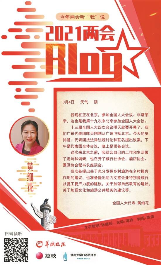 “你们的Vlog做得太棒了,特别好看!”3月9日,全国人大代表陈海仪专门找到记者,主动点赞羊城晚报两会期间推出的Vlog系列短视频。肖胜方、张志良、袁玉宇、安然、蔡卫平等代表纷纷当面点赞。 今年两会期间,羊晚充分利用Vlog(Video Blog)、Rlog(Radio Blog)等音视频形式传递时政热点新闻,推出《Vlog代表委员看两会》《Vlog记者两会日记》视频栏目,以及《Rlog两会声音日记》《粤听两会》音频栏目。栏目通过一线记者、代表委员的出镜拍摄录制,展现最新鲜真实的两会动态,让时政报道更加“好玩有趣”。音视频产品在羊城派APP、金羊网、羊城晚报微信视频号、抖音号、快手号、新浪微博、荔枝等平台全面传播。 《Vlog代表委员看两会》栏目邀请了全国人大代表黄细花、蔡卫平、陈海仪、黄晓渝、罗振及全国政协委员黄西勤进行Vlog短视频录制,从3月4日起,每天一位代表或委员出镜录制自己的两会一日行,分享履职过程、感受,截至3月10日共推出6期。 《Vlog记者两会日记》则通过本报参会记者侯梦菲的视角带领观众了解两会动态,用轻松活泼的短视频形式呈现时政新闻,展示代表履职风采。如何把一天的采访浓缩在3分钟的视频中?如何让视频既紧贴代表履职,又轻松活泼?为此,记者每次视频设置一个主题,如:出发日Vlog、大会开幕Vlog、妇女节“她力量”Vlog报道等,顺着主题进行拍摄,剪辑时充分利用花字幕、特效、贴纸、音效等技巧将视频包装得更年轻化、更有趣。在此栏目中,记者充分展现了全媒体采、编、播的各项技能,展现了一个全媒体记者的责任和担当。 音频方面,羊晚携手国内最大的UCG音频社区——荔枝,连同暨南大学口语传播系声海工作室共同推出《Rlog两会声音日记》《粤听两会》两大音频栏目。《Rlog两会声音日记》邀请医疗、教育、法律、文旅等行业的代表委员通过声音日记的形式,分享他们的两会履职感受。 《粤听两会》栏目邀请暨南大学的学生用粤语播报两会动态,并就相关热点话题发表自己的看法。其中一期的主播是一位来自香港的学生郑禧年,他表示,从“十四五”规划纲要草案中看到国家非常重视对港澳青年创业的支持,这进一步增强了港澳青年在大湾区创业的信心。栏目通过年轻化的表达,增强与年轻人的互动,拉近了年轻人与政治议题的距离。 值得一提的是,在3月2日与3月3日连续两天推出跨版“牢记嘱托 南粤来鸿”后,羊城晚报携手荔枝,将“南粤来鸿”的意象“实体化”,用10位受访者的声音制作成“声音明信片”,并配以精美海报传播。线上的“声音明信片”还制作成了线下实体明信片,实现了线上线下的良好互动。 羊城晚报记者 柳卓楠 侯梦菲