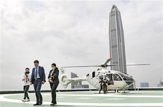 18日,直升机抵达深圳市中心的大中华直升机场 新华社发 |