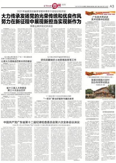 羊城晚报讯 3月18日,2021年省委党校春季学期中青年干部培训班在广州开班,省委书记李希出席开班式并讲话。 李希强调,在庆祝我们党百年华诞的重大时刻,在全党集中开展党史学习教育之际,习近平总