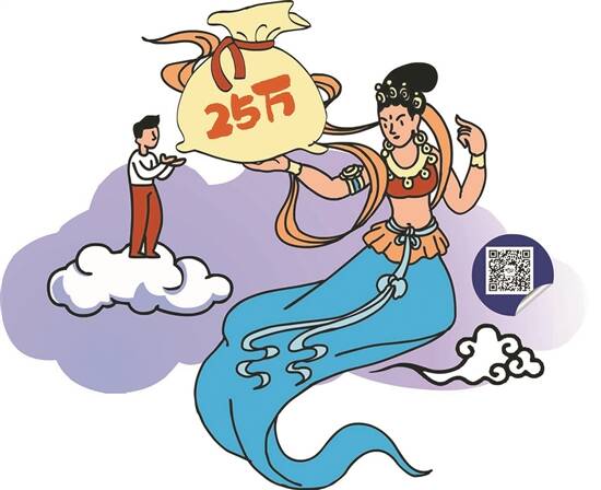 文/羊城晚报记者 吴珊 通讯员 粤体彩 插图 采采 “遇见敦煌”是顶呱刮推出的一款国风主题即开票。敦煌是“丝绸之路”节点城市,以“敦煌石窟”和“敦煌壁画”闻名天下。近日,阳江市的一名购彩者便是凭这款精美的“遇见敦煌”即开票揽获25万元大奖,为阳江贡献税收5万元。 10月13日晚,一位20多岁的年轻人小李(化名)走进阳江市仙踪路26号的体彩实体店。在即开票陈列柜前,他一眼就看中了票面设计非常有特色的“遇见敦煌”,于是他掏钱购买了5张票。 刮完5张票后小李发现中了20元,于是又兑换了两张“遇见敦煌”,惊喜就这样发生了!当刮开第一张票的第一个覆盖膜,票面上出现了“飞天”标志,下面的奖金金额是“¥250,000”。中了25万元大奖?小李一时不敢肯定,马上拿票给业主确认。业主验票后向小李送上了祝福,并详细告知其如何到阳江体彩中心兑奖。 小李拿着中了大奖的彩票,满脸笑容地对业主说:“奖金可以用来买房付首付呢!” 据了解,“遇见敦煌”的票面设计以著名的敦煌壁画为主图案,融合莫高窟、月牙泉等景点元素和张骞等人物形象,意境深远。“遇见敦煌”也是顶呱刮的首款三联张即开票,创新性地将3张彩票的3个不同票面进行统一设计,三张票首尾相连,既可以每张票单独表达,也可以3个票面统一组合成整体,成为一幅完美连贯的画作,极具特色。