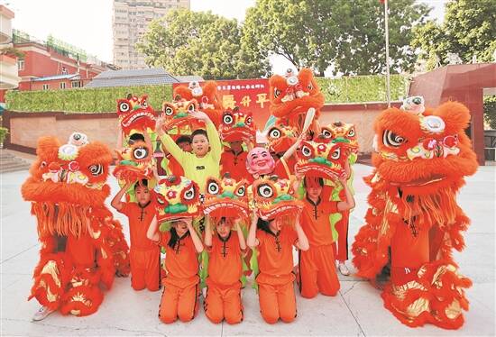 羊城晚报记者 谭铮 “咚锵咚锵嘚咚锵,锵锵锵锵锵咚锵”……当熟悉的锣鼓声在广州越秀区东山口响起,经过的街坊就知道,署前路小学每周一次的“醒狮课堂”如约而至。 近期,粤产国漫《雄狮少年》上映,引发了大家对醒狮文化的高度关注。刚刚斩获第五届广州市青少年醒狮表演赛群狮组金奖的署前路小学龙狮队队员,聊起醒狮时,更是兴奋不已。 作为岭南文化的传统项目、第一批入选国家级非物质文化遗产名录的狮舞(广东醒狮),对于孩子们有着怎样的魅力?越秀的“雄狮少年”又是如何炼成的?羊城晚报记者日前带着这些问题,走近了他们。 为孩子因材施教 20斤重狮头“瘦身”至3.6斤 每周二下午,在署前路小学的操场上,舞醒狮的锣鼓声此起彼伏。广东醒狮省级非遗代表性传承人赵伟斌正和体育老师一起,指导一群平均年龄才9岁的少年。擂鼓、蹲马步、举狮头……这是该校的“第二课堂”,也是龙狮队的训练日常。 “你现在看到的狮头,比传统的狮头轻了很多,只有3.6斤,这是考虑到少年儿童的实际情况进行的调整。”赵伟斌告诉记者,广东醒狮和醒狮扎作均为越秀区的非物质文化遗产代表性项目。2016年,他与多位传承人在越秀区文化广电旅游体育局的支持下,借着广东省广府文化(越秀)生态保护区的建设契机,率先把醒狮这一非遗项目送进了越秀的校园,向青少年普及醒狮文化。“越秀岭南文化氛围浓厚,希望能让更多的青少年有机会了解醒狮的魅力以及蕴含其中的传统之美。”他说。 除了将狮头从20斤减至3.6斤,赵伟斌还和多位传承人一起,针对青少年身心成长的特点,对醒狮扎作进行了创新设计,把狮尾改造为可伸缩式,又创编出一套独特的“醒狮操”,在国民教育体系中寓教于乐,通过醒狮训练、醒狮操、醒狮剧、醒狮面具、文创玩具等形式,为过万名青少年创造了沉浸式的醒狮学习情境。 在多方合力之下,师生们对学习醒狮热情高涨。“我没有想到,第一个学期就有60多名同学报名参加。”赵伟斌高兴地说,如今广州像署前路小学这样开展醒狮进校园活动的学校已有176所,当中包含了幼儿园、小学、中学、职业学校与高等院校。 感受岭南文化之美 在传统中融入“新套路” 广州的冬天,即使温暖,也需要在外面套件薄薄的风衣。但刚参加完训练的谢沛言同学,穿着短袖队服就接受记者的采访,他说,练习醒狮让自己的身体变得更强壮了。 今年读六年级的谢沛言是署前路小学龙狮队的骨干成员。他从小学四年级起加入龙狮队,经过三年的学习,不仅收获了强健的体魄,锻炼了意志,还感受到了传统文化之美。 “我觉得学习有三个阶段,一是把基础打扎实,所以我们会在做动作的时候,想想怎么把动作做得更到位,理解得更透彻,马步扎得稳,醒狮才能舞得稳。”谢沛言说:“第二个阶段是学会与团队配合,通过团结协作,让狮子真正舞起来。最后就是锻炼意志。我在当中懂得要通过不断努力,克服一切困难,来获得自己想要的结果。” 在推进狮舞进校园的过程中,学校的角色相当关键。署前路小学校长谢少媚介绍,学校通过多种学科的结合,让孩子们从多个角度感受狮舞的魅力。“除了作为体育运动让孩子的身体得到锻炼,我们还让狮舞与美术课、音乐课结合起来。通过对醒狮扎作的绘制、对广东传统民乐的欣赏等,让孩子感受传统文化之美,并将它们根植在孩子心中。” 传统文化要焕发新的生命力,除了传承,还要创新。在刚刚举行的第五届广州市青少年醒狮表演赛中,署前路小学龙狮队创造性地加入了街舞元素,成功斩获群狮组金奖。当传统舞狮与年轻一代喜闻乐见的街舞融合,不仅让人眼前一亮,也让传统醒狮有了新的生命力。 赵伟斌表示,他们在推广教学中一直鼓励青少年创编、设计醒狮套路。据透露,针对九年义务教育,他们还编撰了三册不同的醒狮教材,预计在今年6月推出。 “非遗”助力“双减” 回归学校,走出课堂 “双减”之下,“非遗”走进校园,为孩子们带来了更多的可能性。 “我们的孩子从补习班回归到校园中,课堂内提质增效,课外依托合适的项目推进‘五育并举’。”谢少媚表示,“非遗”项目也是学生们可以在“课后430”当中选择的项目,通过对“非遗”项目多维度的学习,学生们能在课堂之外发掘其更多延展的内容,看到课堂外的世界。这是“回归学校,又走出课堂”。 在谢少媚看来,有的孩子可能更擅长音乐,有的孩子更擅长绘画,“如果用一把尺子去衡量所有学生,这是不公平的。学校从‘五育’去培养孩子,可能有的孩子原本学习成绩一般,但当他们的兴趣爱好有了支点,他们就有了自信,整个人精气神都不一样了。” 据越秀区文化馆馆长张蓉介绍,除了“醒狮”进校园,他们也曾做过“叉烧包”进校园、“通草画”进校园等活动。“在社区、非遗保护中心、学校等,我们通过不同项目和不同场所结合,以润物细无声的方式,让非遗保护深入到大家的生活中,从而树立我们的文化自信和民族自信。这才是我们要做的事情。”