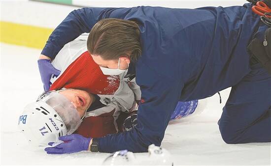 冰球赛中球员受伤的场景 图/视觉中国 |