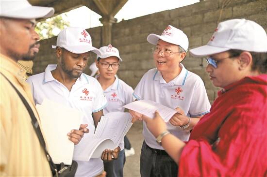 广州中医药大学青蒿研究中心主任宋健平(右二)在科摩罗抗疟 |