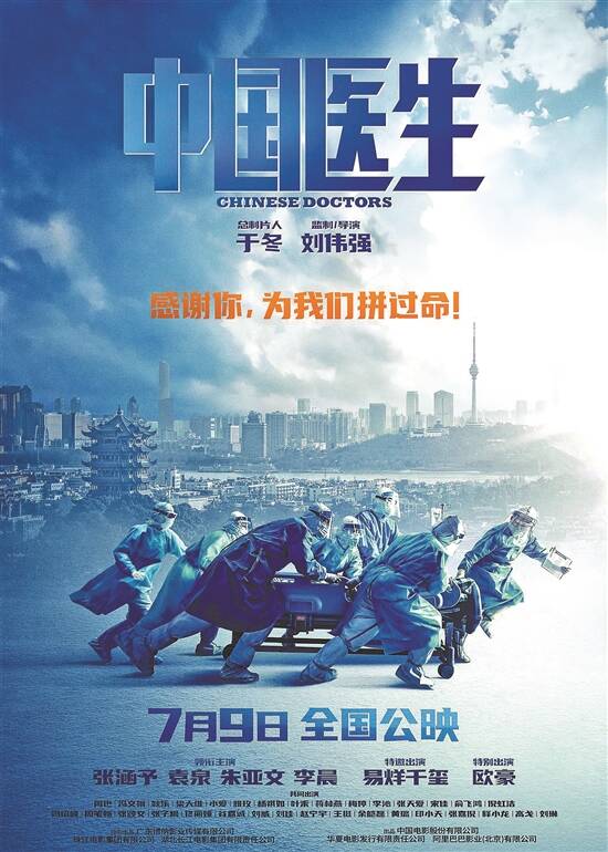 《中国医生》 上映:2021年 导演:刘伟强 主演:张涵予、袁泉、朱亚文、李晨 电影根据新冠肺炎疫情防控斗争的真实事件改编,以武汉市金银潭医院为核心故事背景,同时兼顾武汉同济医院、武汉市肺科医院、武汉协和医院、武汉大学人民医院(湖北省人民医院)、火神山医院、方舱医院等兄弟单位,以武汉医护人员、全国各省市援助湖北医疗队为原型,全景式记录波澜壮阔、艰苦卓绝的抗疫斗争。 影片试图还原在抗疫斗争中白衣天使们真实的工作场景,片中每处专业操作都是在专业医疗顾问的指导下完成的。影片获第16届中国长春电影节评委会特别奖。