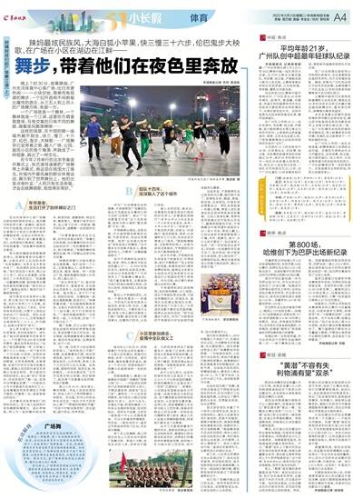 羊城晚报记者 苏荇 詹淑真 晚上7时30分,夜幕降临,广州天河体育中心南广场,比白天更热闹——一小块空地,简单而有规律的舞步,一个拉杆音响不间断输出魔性的音乐,从三五人到上百人的