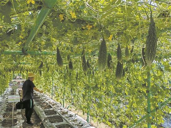 羊城晚报讯 记者许悦、通讯员穗农宣摄影报道:5月25日,第二十三届广州蔬菜新品种展示推广暨第四届广州南沙(国际)蔬菜新品种展示会在广州市农业科学研究院南沙基地开幕,1000多个蔬菜新品种集中亮相。 本届展示推广会总示范面积300亩,包括250亩露地展示和50亩温室大棚展示。参展公司77家,其中18家企业为专区展示。展示蔬菜类型有茄果类、瓜类、叶菜类、甘蓝类、豆类、特用玉米等合计1060个新品种。其中,623个大小果形不同、色彩各异的瓜类蔬菜品种同台比试;有100多个辣椒、60多个茄子品种同台展示;有10多个快菜品种亮相展示会。当中有38个蔬菜品种来自东南亚。 在展示现场,你不仅可以看到颜色各异、类型多样的瓜果蔬菜、辣椒以及富含花青素的甜加黑糯玉米等新优品种,还可以品尝到各种粉糯香甜的花皮贵族、黑贝贝、香芋等南瓜。 今年结合疫情防控“菜篮子”保供的需要,展示会增加了展示生长迅速、耐热耐雨水、口感清爽鲜嫩的快菜品种。快菜一般从播种出苗后30天就可以采收,一般亩产为1500~3000公斤,特点是快生易管,正适合蔬菜应急保供的需求。 广州市农业科学研究院南沙基地位于南沙区珠江街六涌半,今年早春气温偏低、咸潮、土壤板结、病虫害等影响了蔬菜正常生长。科技人员在栽培技术上勇于探索创新,采取水稻与蔬菜轮作、启用海水淡化系统淡化水灌溉、小拱棚栽培、加盖防虫网罩等配套栽培技术,确保早春瓜果蔬菜的正常生长甚至提早上市,目前参加展示各种类作物都生长良好、满园瓜果。 特别值得一提的是节瓜,采取小拱棚栽培配套技术后,解决了早春低温冷害及初春连续阴雨,光照不足、生长缓慢等问题,比传统栽培提早上市2个月。在蔬菜淡季上市,节瓜的零售价可高达8元/斤,经济效益显著,有效补充寒冷早春季节蔬菜供给。广州市农业科学研究院已选育出翠玉1号、翠玉2号节瓜等10多个优质节瓜品种,通过先进栽培技术与优良品种相结合,可实现节瓜在广州的全年供应。