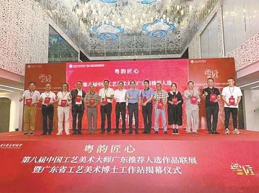 文字整理/羊城晚报记者 黄宙辉 5月27日,“粤韵匠心”——第八届中国工艺美术大师广东推荐人选作品联展暨广东省工艺美术博士工作站揭幕仪式在广东工美艺博中心举行。 参与此次联展的,分别是伍炳亮、吴渭阳、黄伟雄、李中庆、张瑞端、叶福欢、金子松、谭广辉、马志东、霍家荣、莫伟坤、范安琪、王国清13位第八届中国工艺美术大师广东推荐人选。