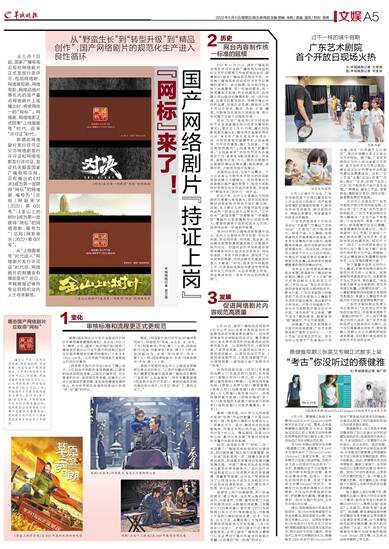 羊城晚报记者 龚卫锋 从6月1日起,国家广播电视总局对网络剧片正式发放行政许可,包括网络剧、网络微短剧、网络电影、网络动画片等在内的国产重点网络剧片上线播出时,将使用统一的“网标”