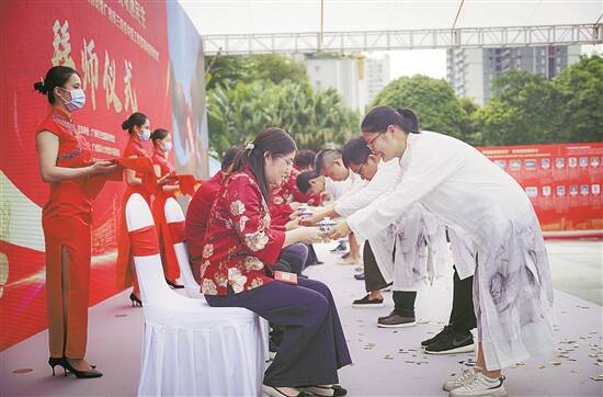 活动现场举行拜师仪式 羊城晚报记者 贺全胜 实习生 吴舒悦 摄 |