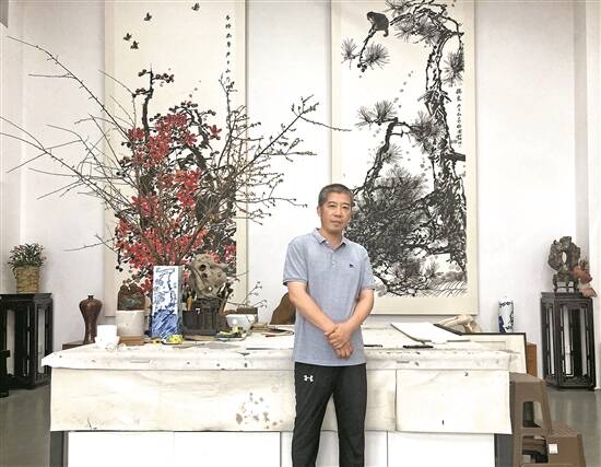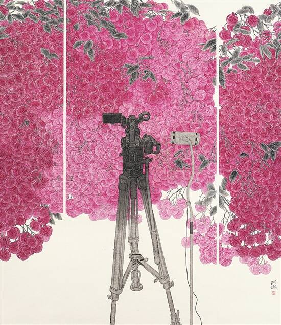 文/羊城晚报记者 朱绍杰 图/羊城晚报记者 文艺 (画作由受访者提供) 走进工作室 简介: 1966年出生于广东潮安。1990年毕业于广州美术学院中国画系。现任广东画院副院长,广东省美术家协会副主席。 ◎以简驭繁胜在单纯 登门采访广东画院副院长郑阿湃的时候,正值荔枝季的尾声。一位来自从化的好友给他送来了名品荔枝。有人戏问他“是吃的荔枝多,还是画的荔枝多”?郑阿湃毫不犹豫地回答:“当然是画的荔枝多,多得多。” 一年多前,郑阿湃从广州市画院到了省画院,从一个较大画室到了现在较小的画室。他说,为了工作方便需要摈弃很多东西,为布局做了减法。如今的工作室空间空阔,大量留白,正如郑阿湃对画面的处理,有时候甚至没有题款。他说:“我希望画面更单纯一些,有时候想的东西太多,反而会讲不清楚,传达不了最重要的信息。” 郑阿湃的工作经历也相对单纯。1990年从广州美术学院毕业后,在从化温泉宾馆工作了12年,于2002年又回到广美。2006年,郑阿湃赶上广州画院第一次向社会公开招聘画家,他以国画成绩最高者考取,自此开启了十数年的画院工作经历。因为长期在画院供职,所在画室都是单位分配的,故而他将工作室命名为“借园”,意即借来的地方。 对于花鸟画家而言,艺术则可能是他们向大自然所“借”之物。郑阿湃强调写生的重要性,这不仅仅来自岭南画学的传统,更是其切身体会。在他看来,画事天天重复就会心生厌烦,这个时候就需要停下来,走进大自然,走进生活里,“在写生中带着问题,解决问题”。 这几年他画写生越来越多,参加学术展出的也以写生画居多,一年可以留下的四尺三开写生画就有两百来张,几乎平均每天都画了一张写生画。他说,画画是手头工夫,光说不练是不对的,画画上很多问题,就是在手头磨练中解决的,水平不是靠嘴巴说出来的,写生也是换个地方换个环境继续干活。 在记者到访的几天前,郑阿湃随广东画院院长林蓝,与一众画院画家前往湛江、茂名两地,开展“深入生活、扎根人民”粤西地区写生、采风、交流活动。他告诉记者,自己将在未来三年,随该项目深入全省21地级市,发掘各地级市及其周边县乡和社会主义新农村的建设风貌,收集创作素材,并整理、分析、研究,创作相关作品。 ◎头上三支“大木棉” “借园”斋号牌匾悬挂在工作室的横梁上,由广东著名画家林丰俗先生题写。对郑阿湃而言,林丰俗先生是对其影响最深的画坛前辈。“小时候大人常问,你长大以后想当什么?我就说,长大以后要像林老师一样画画。”郑阿湃说。 郑阿湃说,如果不是父亲鼓励他画画,也许就从商了,人生历程又是另一番模样。郑阿湃的父亲喜欢画画,但没考上美院,于是就有意识让孩子学。林丰俗是郑父的发小,这层关系让郑阿湃学画有了得天独厚的条件。林丰俗没事就教郑阿湃画画,至今还保留着许多写着“阿湃看看”、“阿湃学学”的示范画作。 2019年,郑阿湃向岭南画派纪念馆捐赠了自己珍藏多年的两件林丰俗代表作:《石谷新田》和《公社假日》。“这两张画他是在广州画的,画了好几稿,有四五张。他在广州搞完创作回了肇庆,然后在肇庆托完底、装裱好,回家探亲的时候带给我爸……我从小就看这两张画长大的。”郑阿湃回忆道。 时至今日,郑阿湃还记得林先生对他的严苛要求。记得上世纪90年代初,郑阿湃开始研究外来艺术,用工笔表现一些农村事物,如蛤蟆、鳄鱼等动物。林先生看后非常不满,直接批评“画画的人,竟然画这么丑的东西”,并对郑阿湃说如果还在画癞蛤蟆,就不用来(给他看)了。当时郑阿湃写了一篇文章直言心中的苦闷:蛇有蛇的路,鼠有鼠的路。 在画室讲述起这段往事,他身后的案台上插着一瓶梅花枯枝。“林老师觉得美术就是表现美,使用美。现在,我教小孩,也会像林老师那样讲。”今日郑阿湃已经完全接受了林老师的美学观。他说:“我欣赏这支梅花枯枝,王肇民先生的作品里有不少残枝败果。但我还达不到那种境界,还是偏向于表现欣欣向荣的事物。” 自大自然“借来”只是艺术的第一步,创作终究是画家内在的外化,更多的是意境与内涵的表现。郑阿湃说,千百年来,大自然的花还是那样的花,草还是那样的草,但画家不能去照搬:“千百年这么多画家画花,花已经不是自然的花了,它应该蕴含大量的文学因素、历史典故。” 在广东画院美术馆的展厅里,有郑阿湃调任省画院后完成的第一幅大型创作《木棉》。他说:“我的头上已经有三支‘大木棉’——林丰俗老师、方楚雄老师、陈永锵老师,他们都是画木棉的高手,而我只能用自己的方式去画。” 艺谈:当画画轻车熟路,不是件好事 画院平台 羊城晚报:您长年在画院工作,如何看待这个平台?什么样的画家适合画院? 郑阿湃:一个画家能够到画院工作,已经是一件很幸运的事,但压力也很大。画家在画院就要专职创作,最基本的条件就是能画好画、愿意画。条件越好,对画家来说压力越大,画得不好就不配拥有这一切。尤其是主题创作,需要特别动脑筋。我是画花鸟画的,很难直接表现主题,需要在画外作延伸。 作为专业画家,画院的平台对我有很大的促进, 在这里逼着我一心一意地去考虑画画,视野和审美要求也不一样了。比如花鸟画,进画院前觉得有情趣、有意境就够了,现在思路产生了变化,更多地与宏观的思考联系起来。 羊城晚报:中国画、