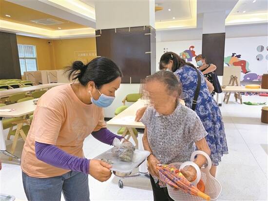 梁艳影(中间居右者)为居民送上饭菜 |