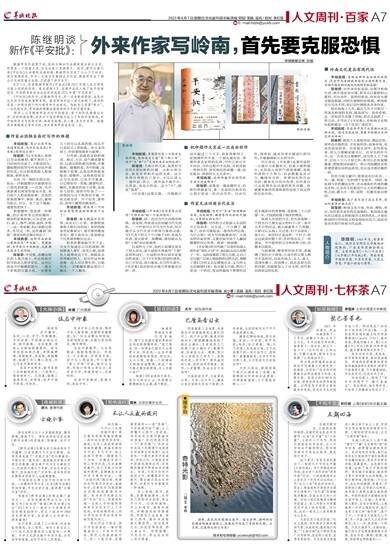 羊城晚报记者 孙磊 陈继明写作速度不快,他的大部分作品都有漫长的生长史,即便是一个短篇小说,往往也在心里放很久。然而,新作长篇小说《平安批》从动笔到完成初稿,陈继明仅仅用了