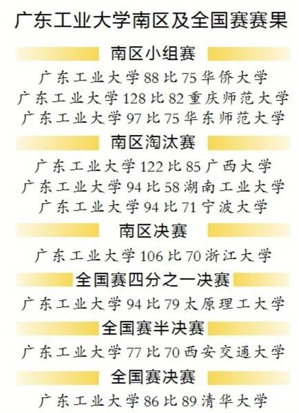 羊城晚报记者 郝浩宇 詹淑真 7月31日晚,重庆市南岸区的江南体育场几乎座无虚席,近4000名观众见证了身着紫色球衣的清华大学男篮连续第三年夺得了中国大学生篮球一级联赛的冠军。清华大学的双核之一、来自重庆的邹阳高捧FMVP奖杯,在家乡父老面前享受着属于自己的高光时刻。而在狂欢的清华学子身后,刚刚以3分之差输掉这场决赛的广东工业大学男篮将士们的眼神里多少有些落寞。 但广工的将士们完全可以骄傲地走出赛场。其实在赛前,没太多人会想到广工会给实力超群的清华制造那么多的麻烦,哪怕在核心球员陈国豪被提早罚下,广工也和清华对抗到了最后一秒。人们总期望见证大卫击败歌利亚的故事,但就像著名篮球漫画《灌篮高手》里描绘的那样,主角所在的湘北最终没能夺冠,而在现实中,广工也没能战胜强大的清华。对于广工的将士们来说,创造队史最佳战绩、历史首进CUBA决赛,这样的成绩已足够亮眼,广工男篮无愧于南粤雄狮的称号。 连克强敌,状态稳中有升 广工男篮的2022全国赛征程从海南开始。6月26日,因疫情中断了三个月的2022CUBA南区赛事在海口拉开帷幕,广工以88比75战胜了CUBA九冠王华侨大学,从此踏上了对最高荣誉的冲击之路。谈起这场比赛,广工男篮主教练于广龙仍然记忆犹新。“这是我们在南区的第一场比赛,其实三个月之前我们状态很好,但是因为疫情比赛打不了,球员也只能休息”,于广龙说,“一上来对手实力也强,球员也不是很适应,所以开局打得不好,好在最后他们调整了过来,最后赢下了比赛。” 在于广龙看来,这场比赛的结果相当重要,因为赢球给了球队足够的信心,让球员们更从容地面对接下来的比赛。“南区第一场比赛打完后状态就特别顺,球队的状态和队员们的发挥都很好。在海南也有我们广工的校友会,来了很多球迷,像在我们的主场一样。”于广龙说。在接连击败了华侨大学、重庆师范大学、华东师范大学、广西大学、湖南工业大学、宁波大学和浙江大学后,广工男篮以7战全胜、加冕南区冠军的战绩闯进全国赛。 不过对于广工男篮而言,闯进全国赛还仅仅是开始。虽然于广龙表示在赛前无论是学校还是教练组都没有给球队制定明确的目标,但队员们心里一直很清楚:他们有全国四强的实力。而要想打进四强,就必须在四分之一决赛赢下太原理工大学。这也是于广龙赛前准备最充分的一场比赛,用他的话来说就是:“不赢下太原理工,接下来的半决赛甚至决赛都是虚话。”结果,备战充分的广工一上来就确立了20分的领先优势,最终轻松晋级。 从比分来看,半决赛和西安交通大学的比赛是广工晋级路上遇到的最大挑战。在于广龙看来,这场比赛是一场遭遇战,就看谁在关键时刻不手软。哪怕在最后时刻,西安交大连续命中三分将分差迫近时,于广龙也依旧相信他的弟子:“我相信队员们的发挥,他们打过很多比赛,在场上的执行力也很强,我其实不是很紧张。”最终,广工以7分险胜,队史首次站上了总决赛的舞台,而对手正是过去两届CUBA冠军,看似几乎无法撼动的清华大学。 决战清华,虽不甘但亦无憾 清华大学的强大,从数据统计就可见一斑——在今年CUBA的全国赛,清华大学保持不败,场均净胜对手37.3分。而在赛后的颁奖典礼上,冠亚军的身高对比更是相当明显,清华男篮的身高明显比广工男篮要高,前者两米以上的球员就有四五个,而后者阵中身高超过两米的只有陈国豪。虽说不是只有身高高的人才能打好篮球,但清华男篮在内线的优势确实明显,他们对广工男篮核心陈国豪的轮番消耗,也成为了本场比赛的胜负手。 在赛前,广工男篮对这场决赛进行了充分的准备。“之前我的球员们也在各种场合和清华的球员交过很多次手了,彼此之间也相当熟悉”,于广龙说,“赛前我们下午六点发车去场地,五点我们开了个准备会,包括谁防谁,打什么战术之类的。”对于清华男篮的两名重点球员,今年CBA选秀的新科状元王岚嵚,还有明年选秀的热门人选邹阳,广工都有针对性的布置。“对于王岚嵚我们的策略是放突不放投,对于邹阳我们是放投不放突,一整场这个战术都打得很好,就是到最后被邹阳投进了一个关键的三分,没办法,他们的整体实力确实还是强。”说到这,于广龙有些无奈。 决赛第四节刚开始不久,广工男篮核心陈国豪就因5次犯规被罚下,这也成为了本场比赛的转折点。“当时心情很复杂,也很不开心,没能和队友拼到最后一秒。”回想起这一刻,陈国豪仍心有不甘。但对于陈国豪在决赛的表现,于广龙已相当满意:“在赛前我其实没有想到,清华那么多高大的内线,在打国豪时其实是打不动的。”但他同时也表示,清华在冲击力、组织、篮板方面还是有一定优势,这也是广工输球的主要原因。 虽然陈国豪被提前罚下,但广工的队员们一直在困难局面下坚持到了最后一秒。球队主力球员刘康能表示:“虽然总体有些遗憾,但球队发挥其实挺好的,教练也能及时指出我们的问题,球队的配合也相当不错”。在决赛中有着出色表现的卢健豪也说:“(陈国豪被罚下时)大家都没有想太多,只想拼到最后一秒,只要哨声没有吹响,我们就没有输。”谈起这场比赛,卢健豪虽然觉得遗憾,但也对球队的表现感到满意:“可惜当然可惜,但我们是抱着打进四强的想法来到这里的,每多打一场都是有赚的。最重要的是我们打出了广工的精神和底蕴,得