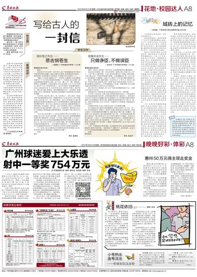 作文题 统编版高中《语文》必修下册的第一单元和第八单元的学习任务同属于“思辨性阅读与表达”。 请从第一、第八单元的文章相关的古人中选择一位给他写一封信,谈谈你对他(或者是文章的内容)的认识和感受。 要求:题目自拟,不少于700字。 学生习作 致杜牧之先生—— 悲古悯苍生 □易震东 广州市真光中学高一(13)班 尊敬的杜牧之先生: 您好。 我是来自千年后的一名中学生,看了您那篇场面宏伟却文字简洁的《阿房宫赋》,竟是又想笑又想哭,回望那阿房宫昙花一现的场景,又觉得那么可悲可叹,不由想写信与你探讨一下。 “覆压三百余里,隔离天日”。好夸张,可惜那巨大的房檐是否能为千千万万的百姓遮风挡雨呢?“二川溶溶,流入宫墙”,却未必能流到百姓的田头吧。这“五步一楼,十步一阁”,那长桥,那歌台,那般繁华,又极显富裕,却只是表象,让天下人叹为观止,却住不下天下苦命的百姓——这不可笑吗?看似繁华盛世,实际上却是战火纷飞,百姓劳役压身,活得苦不堪言,痛不欲生。据正史记载,那真是一段穷奢极欲的历史。正因如此,敬爱的牧之先生,看到您笔下的阿房宫如此繁华,后世的我才会觉得好笑啊。 “戍卒叫,函谷举,楚人一炬,可怜焦土”。曾几何时,“明星荧荧”般亮眼的阿房宫如一把烟灰湮灭于历史长河中,如今华夏大地上竟无留下它一丝一毫的痕迹。是什么样的强大力量,能摧毁那样坚固的宫墙堡垒;是什么样的愤恨唾弃,能彻底淹没那样的繁荣奢华?牧之先生,我站在后人的角度,想象着那虚实不知的景象,不免感到一种可悲。这巨大的落差,恰是上天的神看到也禁不住抱头痛哭吧?“独夫之心,日益骄固”,想必牧之先生写下此篇时,想到那毫无理智的暴君,也是满怀气愤,悲至不可言吧。 “后人哀之而不鉴之”。历史无法改变,牧之先生感叹“后人而复哀后人也”,我也大有同感。站在历史长河边,看着那缥缈的前朝往事,看那些名士们纵使一心为国,不断发出警示,仍无法力挽狂澜,抵不住历史洪流如猛兽撕扯般将他们吞噬,我只感到一阵无力。牧之先生之所以写下《阿房宫赋》,我大胆揣测,您应该也是茫然地遥望历史,一边在感叹中悲悯苍生,一边希望能被更多人听到您的叹息而在当下的现实生活中作出借鉴与改变吧? 写下此信,我正是想表达对您的所悲所叹的理解与认同。您字里行间所不能明说的,我想我也许懂了。 此致 敬礼 学生 易震东 致魏玄成先生—— 只做诤臣,不做谀臣 □朱泳宁 广州市真光中学高一(13)班 尊敬的魏玄成先生: 您好!我是21世纪的一名中学生,在这里给您写信,聊表敬意。 我是在历史课本上第一次认识你的。盛唐之景,贞观之治,少不了一个作“鉴人之镜”的您。后来,我学到《谏太宗十思疏》,固本浚源,十思九德,足见一代诤臣的诚恳与智慧。让我感慨的是,您一生为人臣子,却只做诤臣,不做谀臣,只做天下人的臣子,而不是只做皇帝的私臣。 您说:“兼听则明,偏信则暗。”太宗牢记了,广听人言,得民心;您说,“饥者易为食,渴者易为饮”,初展“致化”的政治思想,太宗听了,建立起教化百姓的信心,为帝国稳固打下良基。种种事迹,足可见您为国为民的拳拳之心和为人臣子的机智。 您立在历史上的身影,用“文贞”来形容的确再贴切不过。这更让我对您产生好奇。 查阅更多关于您的故事,我发现您的成长并不一帆风顺。 年少时,父亲去世,出家为道士的您依然刻苦读书。正是这段经历让您更能深感百姓疾苦,让您更能同情百姓、爱惜民力。您多次对太宗进行关爱民生的提醒,就可见您胸怀大志,希望能以儒家思想劝诫君主应明德慎罚,惟刑之恤,强调治理国家的根本在于德、礼、诚、信。您的这些思想、言论,对后世一直都有不小的影响,也值得我学习与思考。 令我意外的是,历史上的你其实还十分可爱和有趣。 在《龙城录》里,您因为喜欢提建议,时常让皇帝下不了台。有一天,太宗笑称您为“羊鼻公”,说没什么能让您轻易动心的东西。但他从侍臣口中得知您喜欢吃醋芹后,便在宴会中赐了您三杯醋芹。您食指大动,饭还没吃,就让盛菜的盘子见了底。太宗因此笑话您,您却从容地说:“君主喜欢无为,臣子自然不敢有什么偏好。臣执作从事,就好这一口罢了。”让君王默然有感,叹息良久。您的敢为敢言与率真,让我也不禁失笑,您果然是一代“直臣”,也是一代“诤臣”。而您也有幸在难行的“诤臣路”上遇到了难得的明君,这才开创了历史上的一段盛世。 人的一生难免经历坎坷波折,正如您所经历的,而我们就应该像您这样,始终不怨不悔,一身光明正气,胸怀天下,奋勇向前。这足以让千年后的我深深敬佩,向您学习,也向您致敬! 此致 谨祝福安 学生 朱泳宁 教师点评 这两个单元的内容都属于“思辨性阅读与表达”,但第一单元以“中华文明之光”为人文主题,第八单元以“责任与担当”为人文主题。从《论语》《孟子》《庄子》等先秦文学典籍,到杜牧、王安石等古人的名篇,所选择的每一篇文章都有丰富的文化意蕴,值得学生深入思考。 我布置的写作任务,目的正是想引导学生在学习完文章之后,再进行回顾和反思,以达到“思辨”的目的。 这几篇习作都比较优秀。其中,易同学结合杜牧的《阿房宫赋》,在遥望历史、感觉可笑可悲的同时,去感受对当朝可叹却无力的杜牧的内心世界;朱同学写给魏徴的信中,除了结合《