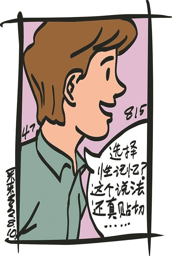 插图 采采 原来,穆忠说的百分百中奖的办法,就是买双色球6+16的复式票,这样一来,就是全包了蓝色球所有号码,肯定能中个5元的末等奖。对此,李江不屑地撇撇嘴:“原来你的秘诀就是这个啊?唉,就算不这么买,我原来也经常能中个5元、10元的奖,只不过奖太小,在我眼里就和没中一样而已。” 穆忠哈哈大笑:“那你还说你从没中过奖?难怪你天天这么愁眉苦脸,原来是选择性失忆造成的。你选择只记着不中奖时的苦恼,却忘了买彩票时希望带来的愉悦、中奖时不管大小都很欢乐的奖金,毕竟只要中奖就是一份值得开心的好运。而且你也忘了,彩票不管中奖与否,都能给其他需要帮助的人送上一份爱心。” 李江闻言,笑着说:“选择性失忆?这个说法还真贴切,现在回想,我买彩票时确实只记得不中奖的情形,而中奖的快乐都是转瞬即忘。”穆忠说:“其实不止是买彩票,在生活中也是如此。如果你选择去记忆快乐,那么你会发现,不管多难,生活中都能充满阳光,成为我们继续前行的动力。如果相反的话,你就会总是愁眉苦脸的模样。” 李江说:“好,从今天起,我也要选择性地去记忆快乐,希望也能像你一样,天天哼着歌去买彩票、去过日子。”(曹文学)