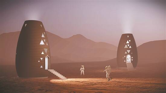 金昌火星1号基地三期规划建设中的火星主题巢穴酒店,3D打印的50平米独栋LOFT取名“孤独研究所”