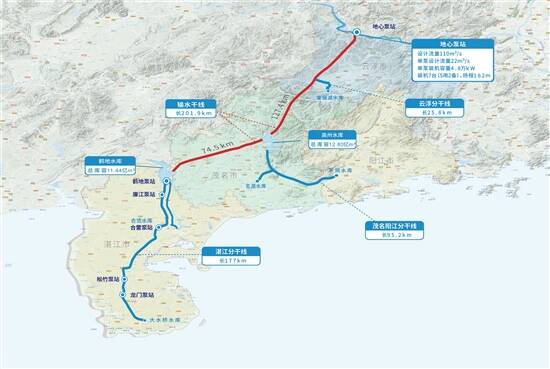 文/图 羊城晚报记者 许张超 通讯员 粤水轩 吴怡蓉 8月31日,环北部湾广东水资源配置工程开工仪式在北京、广州、茂名三地同步举行,标志着该工程正式开工建设。羊城晚报记者从现场获悉,作为广东省“五纵五横”水资源配置骨干网其中一“横”,该工程覆盖云浮、茂名、阳江、湛江4市13个县城区、112个乡镇,将从根本上解决粤西地区特别是雷州半岛的水资源短缺问题,润泽广东千万人口。 “水困难题”亟待突围 2019年至2021年间,湛江市徐闻县在4月至6月连续出现高温日,下桥镇旁的小二型水库及湖泊水位下降到死水位(即正常运行情况下允许水库消落的最低水位);2020年7月,阳江市一度出现有气象资料以来最少的降雨量,甚至发射多枚火箭弹向天“借”雨;2021年2月,信宜市水口、镇隆等镇的农田因干旱而龟裂,村民在春耕季因缺水而发愁;2021年5月,罗定市气象干旱达到重旱,局部特旱…… 粤西地区——特别是雷州半岛——常年受干旱影响。据水利部门的不完全统计,1949年以来,雷州半岛有56年出现过旱情,其中25年出现大旱。2015年,雷州、徐闻和遂溪等地更是出现有气象记录以来降雨量最少的极端干旱。 同时,受地下水超采、农业和生态用水被挤占、应急备用水源缺少等问题影响,粤西地区水资源承载能力不足的问题进一步凸显。雷州半岛耕地资源充足、光热条件较好,是广东省主要商品粮基地和高效经济作物主产区,如阳西县近年来新增多个圣女果、五爪金龙、牛大力等产业种植地,农业用水量因此急剧增加。 “我们村有140多户、800多人,从1949年到现在都是喝地下水,干旱时有些井打到300多米才有水,农作物也是靠打井灌溉。”徐闻县下桥镇桥南村委北山村村民黄堪学如是说。下桥镇北插村委会书记郭朝栋则介绍称,村里有1475亩水田、1500亩林地,主要种植菠萝、水稻、甘蔗、玉米等,也因缺水而无法保障产量。 如今,湛江市、茂名市、阳江市是北部湾城市群的重要城市、“一核一带一区”区域发展新格局中沿海经济带的重要组成部分,云浮市也是国家珠江-西江经济带主要城市,水资源短缺问题正在制约着粤西四市的经济发展。作为广东省迄今为止引水流量最大、输水线路最长、受水区域最广、总投资最多的重大跨流域引调水工程,环北部湾广东水资源配置工程的建设已成为破局关键。 引水西江“解渴”粤西 从2017年环北部湾水资源配置工程总体方案的任务书获得水利部批复,到2020年水利部印发环北部湾水资源配置工程总体方案审查意见,再到2022年环北部湾广东水资源配置工程可行性研究报告获国家发展改革委批复……如今,总投资606.43亿元、全长500公里、总工期96个月的环北部湾广东水资源配置工程终于正式开工,将引西江水惠泽湛江、茂名、阳江、云浮四市。 记者从现场了解到,该工程由西江水源工程、输水干线工程和分干线工程组成,将从云浮市西江干流取水,基本采取全线封闭输水,通过泵站加压提水,穿过云开山脉,将西江和高州水库、鹤地水库等11座水库连通,形成“一江两库三分干”的供水格局,构建覆盖粤西4市13区县超大型复杂水网体系,实现多水源互联互调互备。 其中,西江水源工程泵站设计取水流量为110立方米/秒,设计扬程162米;输水干线长201.9公里,通过高州水库、鹤地水库2座已建大型水库进行调蓄;输水分干线长298公里,其中云浮分干线长25.8公里,首部设计流量为10立方米/秒;茂阳分干线长95.2公里,首部设计流量为26立方米/秒;湛江分干线长177.0公里,首部设计流量为27立方米/秒。 据水利部珠江水利委员会副主任易越涛介绍,环北部湾广东水资源配置工程建成后,受水区分水口门合计平均增供水量达到20.79亿立方米/年,其中城乡生活和工业供水14.38亿立方米、农业灌溉供水6.41亿立方米,可大幅度提高粤西地区特别是雷州半岛供水保障能力,为当地经济高质量发展提供重要的战略支撑。 “工程将新增灌溉面积185万亩,可退还被生活工业挤占的灌溉水量,保障廉江等国家粮食核心区的口粮田稳产;每年可退减地下水超采区开采量5.66亿立方米,退还被挤占的生态环境用水1.85亿立方米,大幅度改善区域水生态环境。”广东省水利厅副厅长申宏星说道。据初步估算,该工程建设还可带动GDP增长0.09个百分点,新增就业岗位30万个。 科技攻克施工难题 “从西江调水到雷州半岛,调到我们家门口,以后喝水、生活都不用愁了,希望能够彻底改变雷州半岛缺水干旱的局面,很期盼早日建成通水。”徐闻县下桥镇桥南村委北山村村民黄堪学在听到环北部湾广东水资源配置工程开工时这样说道。黄堪学表示,期待工程建成后能够长期改变徐闻县“十年九旱”的艰难局面,喝上优质的饮用水。 工程从云浮的地心泵站,再经茂名延伸至阳江市的茅垌水库、大龙桥水库,长达500公里的输水线路需穿越富水断裂破碎带、蚀变风化深槽区、中高地应力和岩爆地层等多种不良地质段。而输水干线云开山隧洞单洞长64.48公里,最大埋深达到910米,是广东最长最深的输水隧洞。从工程设计到开工建设,再到建成后的运维,如何攻克这些水文地质带来的难题呢? “这次一共用上了12台岩石隧道全断面掘进机(以下简称“TBM”),其中直径9米以上的有6台,设备国产化率在70%以上。”中铁装备副总经理王杜娟告诉记者,作为工程机械的“掘进机之王”,TBM在隧洞施工中掘进效率高、开挖