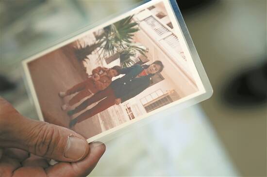 李鼎新的父亲李建平向记者展示李鼎新儿时的照片 |