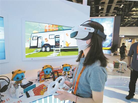 在服贸会广东展区,观众通过VR设备感受岭南非遗文化魅力 |