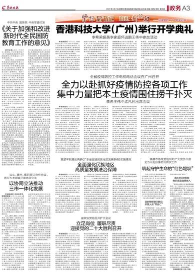 羊城晚报讯 9月1日,全省疫情防控工作电视电话会议在广州召开,同时套开省新冠肺炎防控领导小组(指挥部)会议,深入学习贯彻习近平总书记关于疫情防控工作的重要指示精神,分析当前广东疫情防控面临的形势,