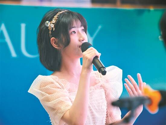 李昕融在签售会上与孩子们一起唱古诗词 |