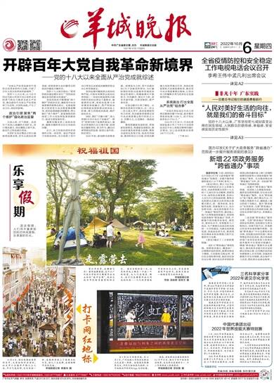 中共广东省委主管、主办 羊城晚报社出版 1957年10月1日创刊 2022年10月6日 壬寅年九月十一 星期四 责编/孙焰 美编/黄国栋 校对/黄文波 报料热线: