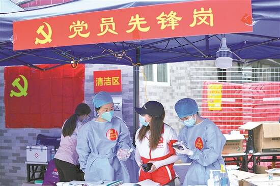今年4月,广州海珠区江南中街发生疫情,党员干部冲锋在防疫一线为管控区居民提供生活保障 羊城晚报记者 宋金峪 摄 |