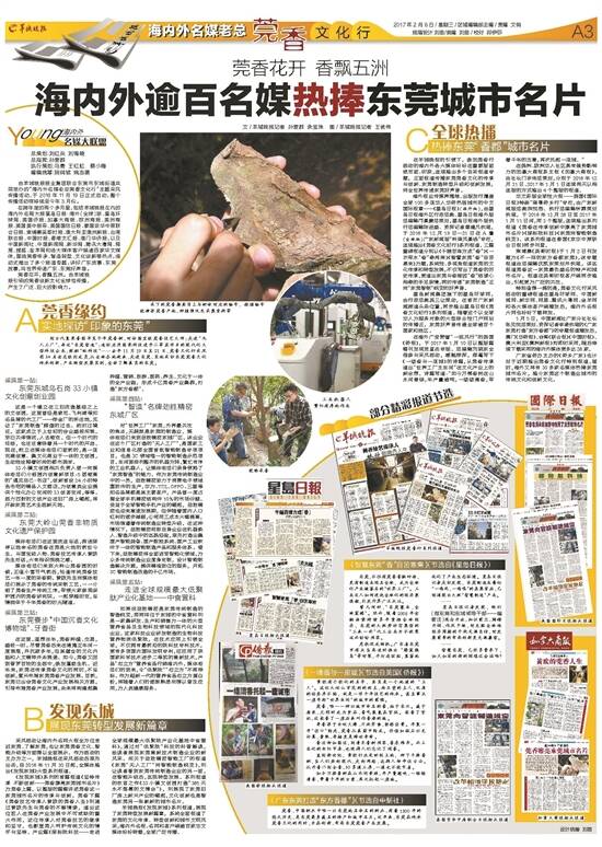 文/羊城晚报记者 余宝珠 图/羊城晚报记者 王俊伟 GDP从5000亿元迈向万亿元,常住人口突破千万大关,地铁开通轨道交通兴旺发达,散裂中子源等重大科学装置启动运行……党的十八大以来,“世界工厂”东莞经济社会发展大步向前,城市综合实力不断增强,品质建设日渐完善,城市面貌焕然一新。十年间,东莞夯实制造业根基,奋步疾蹄创新发展。 2002年,羊城晚报《东莞新闻》(2022年升级为《深读东莞》)创刊,集结专业采编队伍扎根东莞,记录这座城市的成长和蝶变。过去十年,恰好是羊城晚报在东莞开设地方版面的第二个十年。羊城晚报立足莞邑沃土,一路见证、记录着这座城市的每个重要节点,讲好东莞地方发展故事,展现羊城晚报省级党报的担当和民生大报、文化大报的定位特色。从地铁2号线开通的第一趟列车,到“国之重器”中国散裂中子源的投入运行……过去十年,东莞的每个重要瞬间,羊城晚报都在现场同脉搏共体验。 创新驱动注入强大动能 科创发展带动创新驱动力。党的十八大以来,东莞大力实施创新驱动发展战略,为转型升级闯出一条发展新路。从2012年东莞加大“科技东莞”工程和创新驱动发展战略的实施力度以来,羊城晚报始终高度关注东莞的科技发展和经济变化情况,多次在头版、要闻版等重要版面聚焦东莞经济发展及创新动态。 2012年以来,东莞通过招科引智吸引了众多著名高校院所与创新团队竞相进驻,为新一轮产业发展积蓄力量,推动创新型经济发展扬帆起步。工业制造基础雄厚的东莞,在科创发展的带动下一路驰骋。其间,羊城晚报时刻关注着东莞科创发展的每一个重要节点:与华南理工大学共建协同创新研究院、与中科院共建云计算中心、推进散裂中子源项目建设等。2018年8月,“国之重器”中国散裂中子源正式投用开放,羊城晚报以头版导读、要闻版聚焦的方式大版面报道这一科创重举,随后又多次采访散裂中子源的新进展及科学家,讲好东莞科创发展新故事。 轨道交通拓宽发展空间 作为大湾区重要节点城市,东莞市交通基础设施打开了湾区都市骨架,加快步伐建设道路和轨道网络,搭建起了湾区都市“四梁八柱”,让城市发展空间全面延伸。过去十年,东莞全面迈入轨道时代。从虎门高铁站的一枝独秀,到东莞火车站、东莞西站、东莞南站等多个城轨、高铁站的遍地开花,羊城晚报一路见证、用心报道,共同谱写东莞轨道交通时代新篇章。 2014年,东莞新火车站启用,羊城晚报第一时间聚焦周边配套、公交接驳的情况,为市民出行提供指引;2019年,穗莞深城际开通运营,东莞最大的城轨枢纽站东莞西站启用,羊城晚报多方报道,全方位展示这个站点的配套建设和发展前景。市内地铁建设方面,羊城晚报一直高度关注东莞2号线的运行动态,在东莞首条地铁线路开通后,连续多日集中报道地铁开通动态并出版《地铁特刊》聚焦地铁沿线变化和发展动向。 轨道建设引领发展,改变了不少人的出行方式,也让一些曾经的交通地标成为历史。对于这些变迁,羊城晚报一直用心记录和书写着。2019年,在南沙大桥开通后不久,曾是广州南沙和东莞沙田两地唯一过江通道的虎门渡口迎来退役时刻,将停渡退出历史舞台。羊城晚报记者深入一线,对话1991年渡口开航时就见证一切的老船长,并刊发《别了,虎门渡口!天堑已是通途》等稿件,用故事和数据呈现虎门渡口曾经的过往,在记录时代的同时更道出了历史的变迁。 制造业之都人文内涵深厚 举办“海内外名媒老总莞香文化行”主题采风活动,开展“重走东纵路、重讲东纵故事”万里红道主题活动,出版《莞邑深呼吸》书籍,定期刊发《莞邑文脉》专题……作为岭南文化大报,羊城晚报过去十年在东莞文化传承和传播上亮点纷呈,主动作为深入挖掘莞邑文化的精髓和底蕴,讲好地方文化故事。 2016年11月-2017年2月期间,羊城晚报报业集团主导举办“海内外名媒老总莞香文化行”主题采风传播活动走进东莞,采访莞香文化传承创新、产业转型发展实例,向外界全面展示东莞。随后,羊城晚报刊发《坚持传承、不断创新 莞香擦亮东莞城市名片》等多篇报道,聚焦莞香文化发展。该系列报道被星岛日报·海外(全球)版、美国侨报、加拿大商报、欧洲商报、柬埔寨吴哥时报等逾百家华文媒体全文转载转发。2019年,值新中国成立70周年之际,羊城晚报报业集团联合东莞市委宣传部主办“重走东纵路、重讲东纵故事”广东(东莞)万里红道主题活动,跟随东纵后人重走东纵路,追溯历史感受变化,讲好东纵故事。活动通过直播、文图报道、视频等融媒体方式全方位传播,让东纵文化得到更好的宣传和推广。 在东莞本土文化的传播上,羊城晚报通过挖掘民间文化遗址、历史建筑以及民情风俗、生产技艺等非物质文化遗产,开设专栏写好文化故事,并于2018年将精品文章集结成册,出版《莞邑深呼吸》一书。2022年,羊城晚报倾力打造的《莞邑文脉》专刊改版亮相,依托羊城晚报“岭南文化名片”的特色优势,以“新闻为眼、文化为脉”,突出“文化+”“+文化”的融媒体视角,多角度聚焦东莞的人文史脉、文化传承、文化建设、文化产业,深度解码东莞这一全球“制造之都”深厚的人文内涵,促进岭南文化的传承发展。