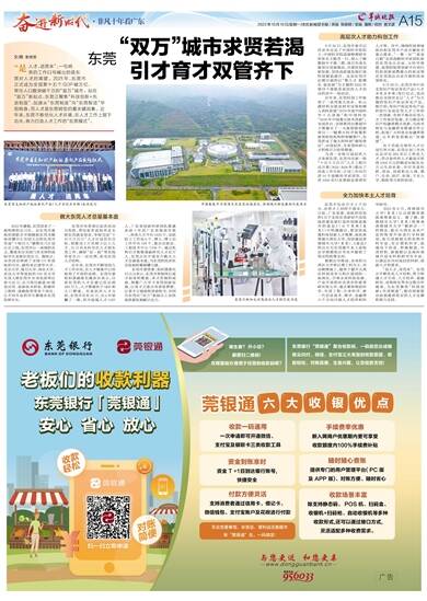 文/图 李洪宝 “是人才,进莞来”,一句响亮的工作口号喊出的是东莞对人才的渴望。2021年,东莞市正式成为全国第十五个GDP破万亿、常住人口数突破千万的“双万”城市。站在“双万”新