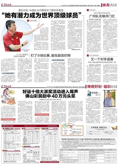 2022年10月13日/星期四/体育新闻部主编/责编 梁劲松 / 美编 陈日升 / 校对 马曼婷