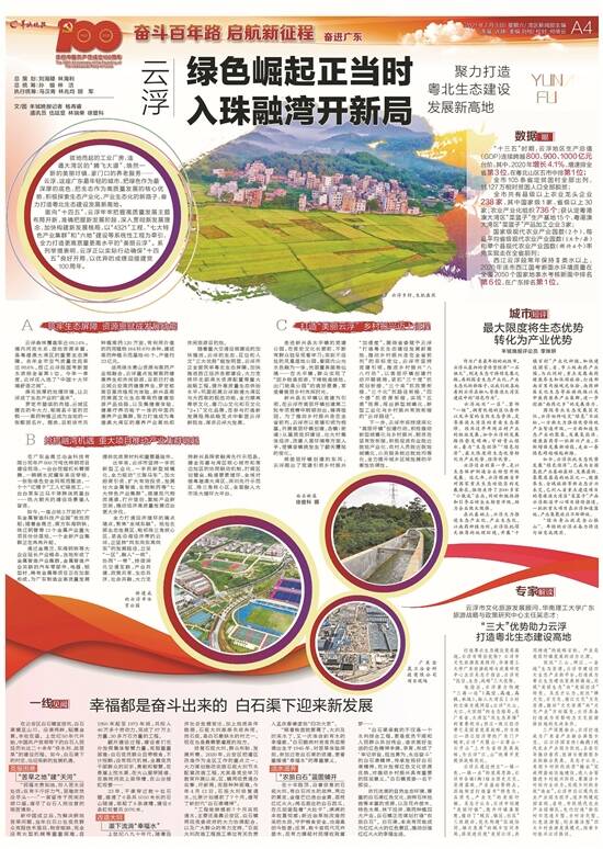文/杨再睿 云轩 西江之滨,灵山郁水。云浮,作为广东省最年轻的地级市,经济社会持续向好发展。近十年来,羊城晚报见证着这个“石头会唱歌”的城市的产业发展,见证着这座城市的青春力量和善德底蕴。 站在新的历史起点,云浮锚定“打造粤北生态发展新高地、建设高质量发展的美丽云浮”这一目标定位,全面实施“东融湾区”策略,探索出了一条高质量发展的云浮路子。 激活动能 打造高质量发展引擎 在云浮循环经济工业园日化集聚区东北侧,过去的六都镇茅坪村,如今已经变成了热火朝天的扩园工地。载重汽车、挖掘机来回穿梭,一个扩园的工业园正在慢慢形成。 过去,有着传统建材、硫化工资源的云浮,迎来了新的发展契机。根据规划,当地依托循环经济工业园重新规划好新型建材、硫化工两大产业片区,全力打造万亩百亿级循环经济工业园。 云浮聚焦园区经济、镇域经济、资源经济“三大抓手”,充分激发人文、生态、区位、资源“四大优势”,持续擦亮禅文化、硫化工、西江水、石材产业、温氏集团、南药产业等“六张名片”,持续探索发展新路。 围绕夯实高端制造业基础,纵深实施“工业立市”战略,云浮大力培育发展硫化工、清洁能源、信创产业、生物医药、现代物流等“十大园区产业集群”;启动建设“千亿级绿色建材产业园”,持续擦亮“中国石都”品牌;同时紧盯金属智造、现代农业“两大板块”,加大力度招引和培育“链主企业”,全面推动企业集聚、园区集约、产业集群,逐步形成“三个千亿级产业集群”齐头并进、蓬勃发展的现代工业格局。 一个个项目的落地,刷新着“云浮速度”,每个前来洽谈的企业都为当地呈现的“青春活力”所惊叹。羊城晚报聚焦、见证当地的发展,在“沿着高速看中国”栏目中,关注当地的行业单打冠军;在广州国家版本馆开馆之日,用“云浮的石头也‘疯狂’”窥见当地的石材产业发展。 西江水畔,抓战略机遇、锚定发展目标,大力实施“东融湾区”策略,一体谋划推进园区经济、镇域经济、资源经济发展,重塑经济高质量发展的动力系统,在发展质量上积极融入大湾区“第一方阵”,实现跨越、超越……一张张云浮市名片正不断被刷新,高质量发展动能正不断被激发。 对标“世界一流” 发展南药产业 素有“南药之乡”美誉的云浮,一直沉淀着厚重的南药种植历史,近年来,从南药的选种植、精选材、深加工多方面下足功夫。云浮结合当地特点,打造产学研一体化结构,不断为促进全球药用资源协同创新与共享利用搭建平台,努力打造“中国南药创新高地、中医药强省排头兵”。 在罗定市龙湾镇,当地大力发展特色南药产业,全镇南药种植面积达2万亩,参与农户2万多人,南药深加工、生态观光旅游等产业迅速发展,为乡村振兴注入了强大动力。 此外,当地还推动南药全产业链发展,在整合基地及科普园的同时,打造龙湾生态乡村康养度假旅游示范镇,推动一、二、三产业融合发展。 从龙湾镇的万亩南药,到当地举办南药产业大会,再到当地加快建设国家中药资源种质库,羊城晚报用一线的观察,倾听种植户的故事,挖掘南药种植的历史,用大量的文字报道、精美的照片视频,通过融媒体传播,助力云浮的南药产业发展。 当前,云浮按照“世界一流”的标准,借鉴先进种质资源机构的经验做法,全力打造国家级南药产业发展战略平台,为广东建设全国中医药强省做出新贡献。 直面发展瓶颈 着力改善民生 近年来,在全力推进高质量发展过程中,云浮直面发展瓶颈,突围争先、跨越赶超,打响村集体经济收入达标攻坚战、基础教育和医疗卫生提质攻坚战、重大社会民生兜底攻坚战。 为了实现到2023年年底全部村级集体年收入达到10万元的目标,云浮制定了《攻坚行动方案》,充分发挥温氏等龙头企业作用,第一批规划建设了14个生态养殖小区,创造性运用“公司+农户”模式,探索出一条符合云浮实际的村级集体经济高质量发展路子。 在基础教育和医疗卫生提质攻坚中,云浮把“资源经济收益的二分之一”用于教育卫生补短板,计划在近3年投入30亿元,以鲲鹏小学为模板,新改建一批中小学,从根本上扭转教育被动局面。全面实施疾病预防、精神卫生、妇幼保健“三大补短板工程”,纵深推进与南方医院共建高水平市人民医院,整合资源,全力打造粤西北最好中医院,大力推动县级医院、镇卫生院升级改造,进一步提升全市公共卫生整体服务能力。 此外,云浮还持续巩固扶贫、济困、养老、助残等制度成果,着力构建“大救助”“大养老”“大儿童保障”和住房等社会保障体系。全面深化国家级居家和社区养老服务改革试点工作,加快发展普惠型养老服务,健全社会救助体系,在改善民生上打造更多的“云浮品牌”。 厚植文明 塑造善德之城 环境洁净,善德常在。党的十八大以来,云浮市一项项精神文明建设工作落地开花,浸润着这座城市人民的生活。 今年夏天,电影《我,就是风!》在云浮顺利开机。该部电影以“励志篮球少年”张家城的成长经历为原型,取材云浮、取景云浮,充分展现云浮人文风貌、传承弘扬中华民族自强不息、仁爱孝悌的美德,推动全社会精神文明建设,弘扬社会主义核心价值观。 2020年夏天,一个独臂的篮球少年,用自己的励志故事,感动了无数人。作为见证者,羊城晚报记者在第一时间深入采访。从报纸到
