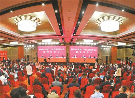 10月15日,中国共产党第二十次全国代表大会新闻发言人孙业礼在北京人民大会堂举行新闻发布会 新华社 发 |