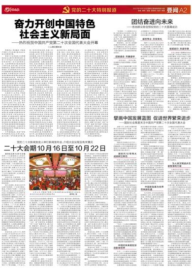 2022年10月16日/星期日/要闻编辑部主编 责编 胡军 / 美编 湛晓茸 / 校对 林霄