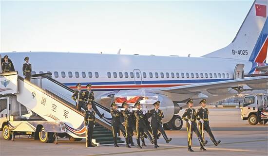 12月1日,江泽民同志的遗体从上海由专机敬移到达北京。习近平、李克强、栗战书、汪洋、李强、赵乐际、王沪宁、韩正、丁薛祥、李希、王岐山等党和国家领导同志到北京西郊机场迎灵。蔡奇等从上海护送江泽民同志遗体回到北京 新华社发 |