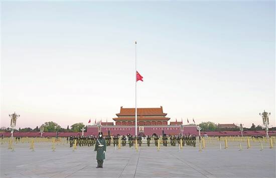 12月1日,北京天安门下半旗志哀,悼念江泽民同志逝世 新华社发 |