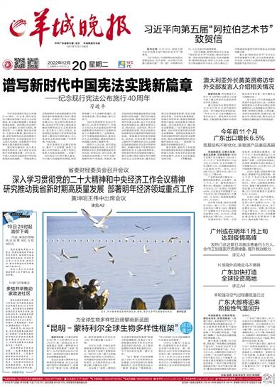 中共广东省委主管、主办 羊城晚报社出版 1957年10月1日创刊 2022年12月20日 壬寅年十一月廿七 星期二 19℃ 7℃