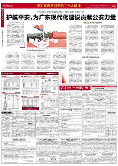 羊城晚报记者 张璐瑶 通讯员 粤公宣 平安是老百姓解决温饱后的第一需求,是极重要的民生,也是最基本的发展环境。 党的二十大报告提出,“建设更高水平的平安中国,以新安全格局保障新