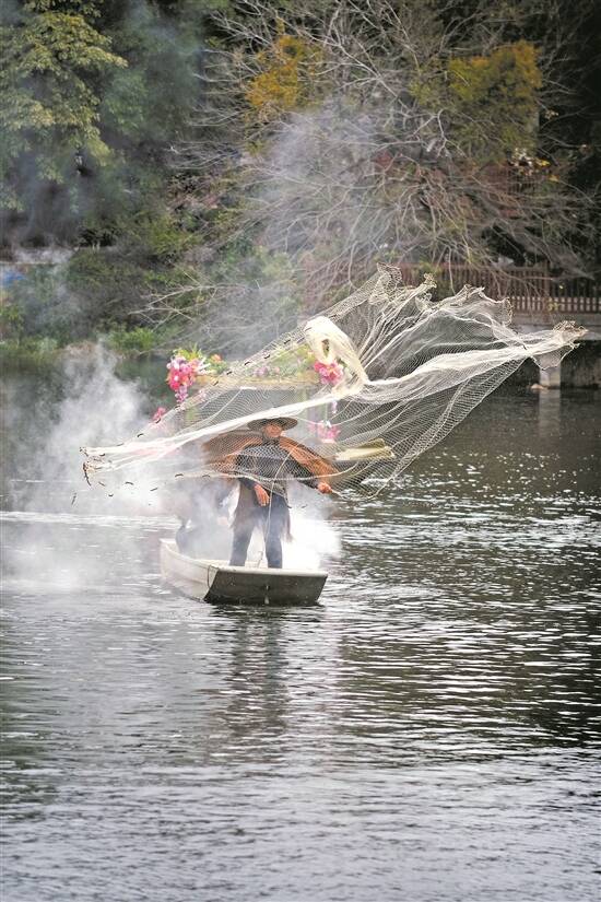 波光粼粼的湖面上演“渔舟唱晚”场景 |