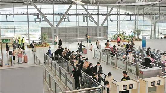 26日,广州南站旅客有序通过安检通道 吴天龙 摄 |