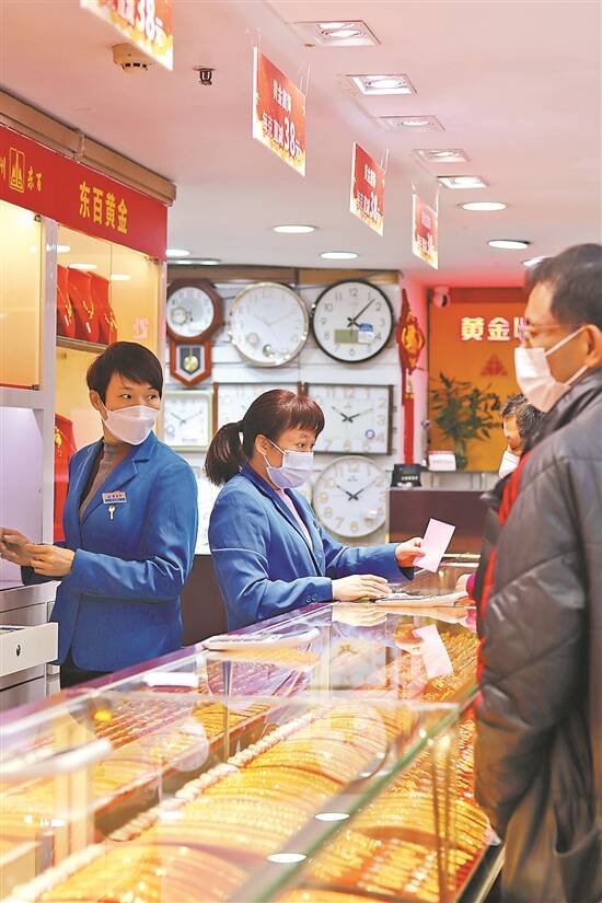 顾客在东百黄金选购金饰 |